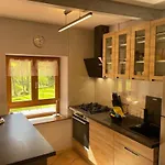 Έχει φούρνο μικροκυμάτων, ψυγείο και πλυντήριο ρούχων.